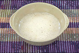 ③自然薯をすり鉢ですり、ダシ汁を少しずつ入れながら、すりこ木で15分ほどすり完成。